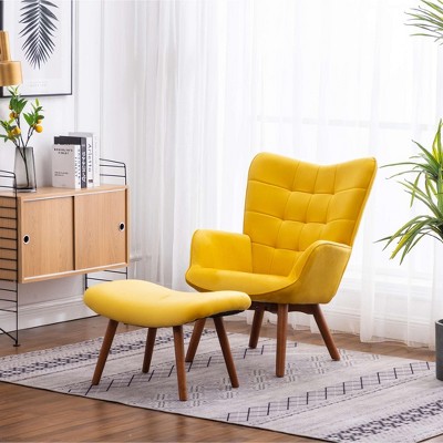 Experience comfort and style with the Leiria Contemporary Silky Velvet Tufted Accent Chair and matching Ottoman. The chair features diamond button tufting, welt trim, and plush polyester upholstery for a luxurious feel. Tapered solid rubberwood legs add mid-century flair, while the matching ottoman provides additional relaxation.