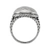 Strong and sculptural, this ring features a broad, oval top bordered by intricate rope detailing. The textured silver surface carries a natural character that gives it soul and dimension. Every detail — from the subtle curves to the handcrafted feel — reflects artistry rooted in substance and individuality. The piece comes with a “.925” sterling silver quality stamp. Nickel-free and hypoallergenic, this style comes beautifully presented in signature packaging.