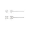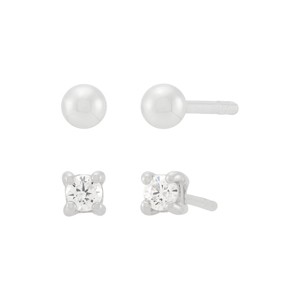 Double the versatility with this stud earrings set. The polished silver ball studs and sparkling 3mm white cubic zirconia studs create a unique, personalized ear stack. Have fun styling them in your second or third piercing for a layered look. The pieces come with “.925” sterling silver quality stamps. Nickel-free and hypoallergenic, this style comes beautifully presented in signature packaging.