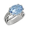 A faceted 10 by 14 mm blue crystal radiates shine in the bold, prong setting. The intertwined band adds visual contrast, framing the gem with balance and strength. This ring is clear, striking, and designed to stand alone. The piece comes with a “.925” sterling silver quality stamp. Nickel-free and hypoallergenic, this style comes beautifully presented in signature packaging.