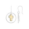 These drop earrings beautifully blend faith and fashion. They feature open circles with 14K yellow gold plated silver cross dangles in the center. The delicate yet bold silhouette makes these earrings meaningful. The pieces come with ".925" sterling silver quality stamps. Nickel-free and hypoallergenic, this style comes beautifully presented in signature packaging.