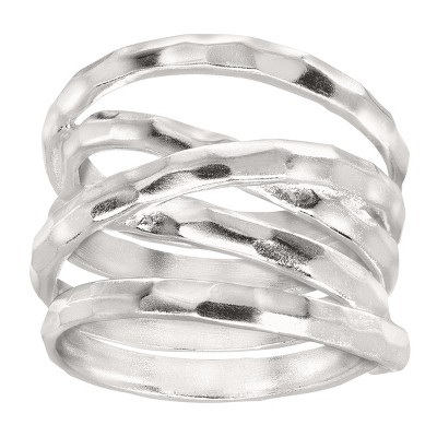 This wide sterling silver ring features layered, folded edges. The textured surface adds depth and dimension. Consider ordering one size up as the wide nature of this ring may cause it to fit snugly. The piece comes with a “.925” sterling silver quality stamp. Nickel-free and hypoallergenic, this style comes beautifully presented in signature packaging.