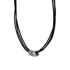 A handful of silver accent rings rest along black leather cords, gathered like thoughts along a quiet line. The necklace is grounded and has enough character to jazz up any simple outfit. It's finished with an adjustable clasp for a customized fit, making it easy to wear at your preferred length. The piece comes with a ".925" sterling silver quality stamp. Nickel-free and hypoallergenic, this style comes beautifully presented in signature packaging.