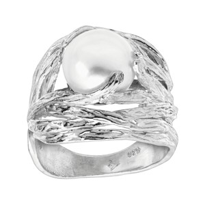 This ring is designed by artisan Efrat Saada-Limor in Israel. A round freshwater pearl is held in a branch-like setting of textured sterling silver. It'll surely add a natural element to any ensemble! The piece comes with a ".925" sterling silver quality stamp. Nickel-free and hypoallergenic, this style comes beautifully presented in signature packaging.
