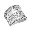 This wide ring has intricate designs and delicate swirls that flow seamlessly across the surface. The detailed craftsmanship adds texture and dimension. Its bold silhouette makes it a standout accessory. The piece comes with a “.925” sterling silver quality stamp. Nickel-free and hypoallergenic, this style comes beautifully presented in signature packaging.