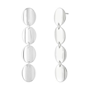 These sterling silver earrings keep their shape simple and lightweight. The concave, polished oval discs fall softly, creating a chic look. Their shiny reflective surfaces catch the light with every turn. These drop earrings will easily become your favorite go-to style. The pieces come with ".925" sterling silver quality stamps. Nickel-free and hypoallergenic, this style comes beautifully presented in signature packaging.