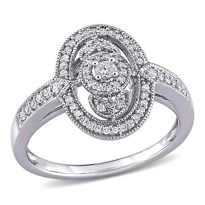 Whether you’re wearing it as a fashion piece or as an engagement ring, this piece will definitely be a conversation starter. Crafted in .925 Sterling Silver, the ring is adorned with 25 princess-cut diamonds in an invisible setting that total up to 1/4 cttw in the center. Beading details — that surround the stones to the band — take the design to the next level. The piece is completed with a double beaded shank for extra bit of elegance.