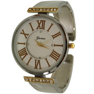 Product Name: SILVER AND GOLD RHINESTONE DETAIL ELEGANT BANGLE WATCH