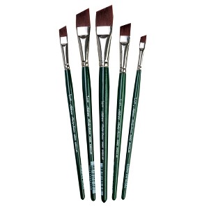 Silver Brush Ruby Satin Angles, 5 Brushes | Ruby Satin® series brushes are handmade by expert artisans who undergo extensive training before they are skilled enough to produce the kind of quality that has become synonymous with Silver Brush Limited. Ruby Satin® fine artist brushes feature multi-diameter synthetic filaments that carry heavy bodied paints effortlessly across your painting surface. This series is stiff, durable and snappy with fine points and chiseled edges for crisp, clean strokes. Ruby Satin® series are rugged enough to withstand rough treatment on textured surfaces.