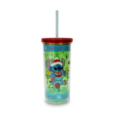 Silver Buffalo Disney Lilo & Stitch Tropical Summer Icons Carnival Cup with Lid and Straw