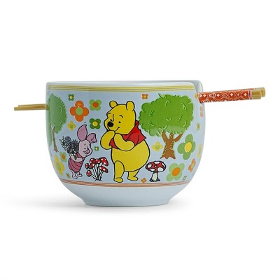 RAMEN MADE FUN: Mealtime just got fun with this officially licensed ramen set featuring Winnie the Pooh and friends. This noodle bowl and chopstick combo is a fun option for any fan's home kitchen.