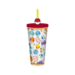 This 24oz plastic cup features a fun Pokemon design with a secure lid and a topper straw for easy sipping. It's a durable and convenient option for on-the-go drinks.