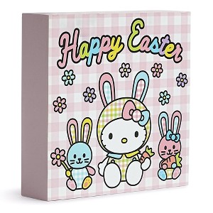 - ADORABLE HELLO KITTY EASTER DESIGN: This wood box sign features Hello Kitty dressed as a bunny, accompanied by two playful Easter bunnies and the cheerful text “Happy Easter,” bringing a touch of Sanrio magic to your holiday décor.
