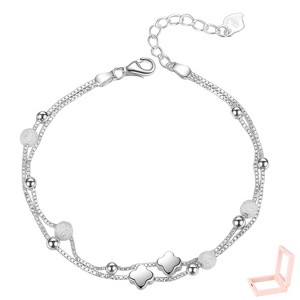 Silver Double-Layered Four-Leaf Clover Bracelet, Adjustable Design, Sparkling for Daily Wear & Gifting