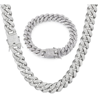 Silver Cuban Link Chain with Heart Pendants, Necklace for Women, Hip Hop Gift
