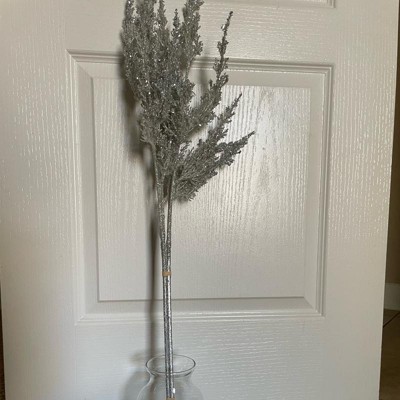 [This review was collected as part of a promotion.] This silver cypress Christmas stem is beautiful and super sparkly without being messy. I love that it doesn't shed at all, which is a huge plus compared to other glittery holiday stems. I added it to my Christmas vases on my mantel and it instantly elevated the whole look. It catches the light perfectly and adds just the right amount of festive shimmer. I would definitely recommend it for easy, elegant holiday decorating.