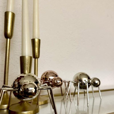 Add a playful twist to your Halloween decor with the Silver Spider Disco Ball Animal Figurines - Bullseye's Playground™. This disco ball spider brings a fun, unexpected pop of color to your setup. Perfect for tabletops, shelves or any space needing a festive touch. Lightweight and easy to place, this disco spider is a great addition to your seasonal decorations.