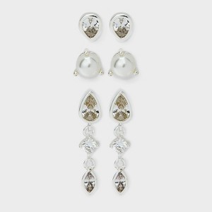 Dazzle every day of the week by styling your outfit with this 3-Piece Dangle Stud Earring Set from A New Day™. This set includes three pairs of silver plated earrings — studs with faux pearls in prong settings, teardrop studs with cubic zirconia in a bezel setting, and dangle earrings with cubic zirconia in a prong setting. Designed with post-back closure for a stay-put fit, these earrings are crafted from nickel-free metal to suit most skin types.