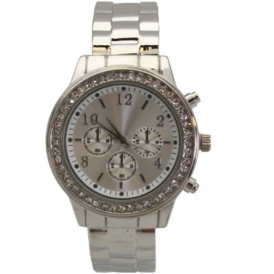 Product Name: Silver Rhinestone Bezel Chronograph Bangle Watch