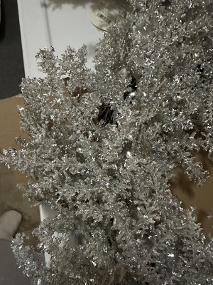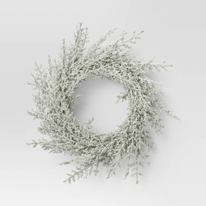 This Silver-Tone Shimmer Wreath from Threshold™ instantly elevates your holiday decor. This circular wreath features faux pine needles with a shiny silver finish for a shimmery effect. Suitable for indoor use only, you can hang it on the wall or above your mantel for an elegant, festive look.
