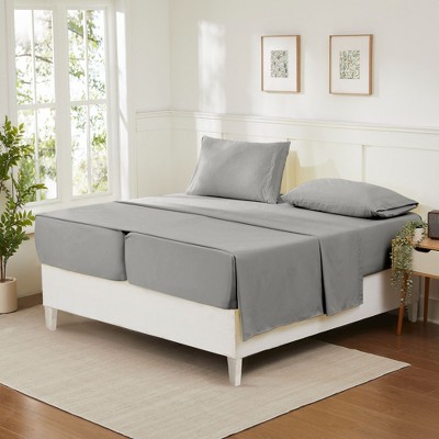 LuxClub 5 PC Silky Soft Cooling Deep Pocket Sheet Set, Hotel Luxury Bedding Breathable Wrinkle & Fade Resistant - Split King, Silver