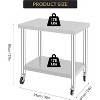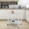 Made from premium stainless steel, this work table resists rust and handles heavy use, supporting up to 300 lbs. Its sturdy design is ideal for restaurant kitchens, home cooking, or workshop tasks requiring reliability and durability. This rolling prep table features adjustable under-shelf storage, customizing space for kitchen tools or ingredients. Keep your workspace organized and efficient with this versatile stainless steel table. With four 360° swivel wheels, two of which have brakes, this metal rolling cart glides effortlessly across floors and stays firmly in place when needed. Its mobility and stability make it a practical addition to any workspace. The smooth stainless steel surface is simple to wipe clean, ensuring hygiene and low maintenance. This kitchen prep table is perfect for busy environments like restaurants or home kitchens where cleanliness is essential.With clear instructions and labeled parts, assembly is quick and hassle-free. Whether you need a rolling island cart for meal prep or a heavy-duty work bench for projects, this stainless steel table adapts to a variety of needs.