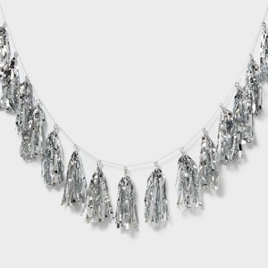 From birthdays to baby showers, celebrate in style with the Tassel Garland from Spritz™. This garland features a white cord accented with silver tassels in paper and foil materials, bringing color and shine to any space. Drape from the banister or mantel to welcome your guests or display around the edge of the table to highlight the buffet or snacks.