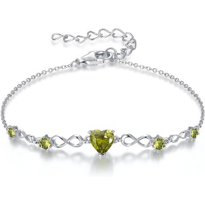 Summit Adventure Dainty Birthstone Bracelet Silver Infinity Heart, Adjustable