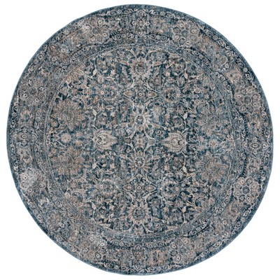 Add a touch of elegance to your living space with this beautifully crafted round area rug from Turkey. Measuring 6 foot 4 inches in diameter with a height of 3/8 of an inch, this rug is designed to complement any room. Its rust and blue tones create a warm and inviting atmosphere. Power loomed with polyester, it captures the timeless appeal of traditional style while offering modern craftsmanship. The absence of a pattern allows this rug to blend seamlessly with various decor elements. Whether placed in a living room or bedroom, its understated charm and rich texture provide a subtle yet impactful statement. Enjoy the sophisticated style and comfort it brings to your home.