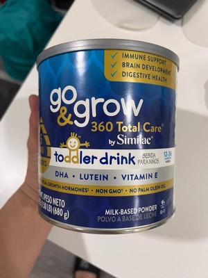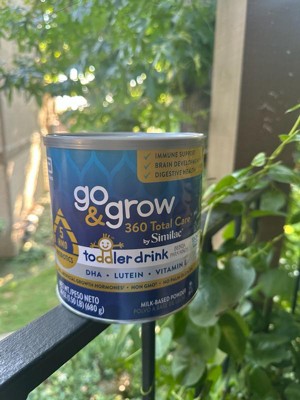 Go & Grow 360 Total Care by Similac* is the first US toddler nutritional drink with 5 HMOs. HMO prebiotics support digestive health and feed good bacteria in the gut, where 70% of the immune system exists. Two servings† have 28 key nutrients to support growth and development . Go & Grow 360 Total Care has our exclusive blend of DHA for brain and eye development, lutein to support eye health, and vitamin E to support developing cells. It has no artificial growth hormones‡ and is non-GMO.§ Designed for toddlers ages 12-36 months old. * Not for children with galactosemia. † 1 serving is defined as 15g powder mixed into 4 fl oz of water. ‡ No significant difference has been shown between milk derived from rbST-treated and non-rbST-treated cows. § Ingredients not genetically engineered. || Go & Grow Toddler Drinks are not for sole source nutrition.
