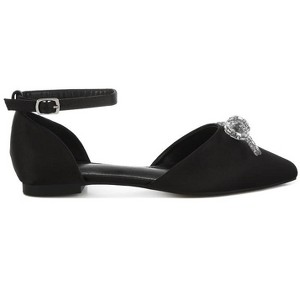 Slip into magnificence with these satin pointed-toe flat sandals! Adorned with rhinestone-embellished bows and detachable wrap-around laces, they’re the perfect pick for brides and bridesmaids, letting you style them two ways. Style and class, all in one! Type: Flat Sandals Upper Material: Satin Outer Sole: TPR Closed Pointed Toe Rhinestones Embellished Bow Detail Detachable Wrap-Around Laces Flat Heels Plush Cushion Insoles RCSH5115