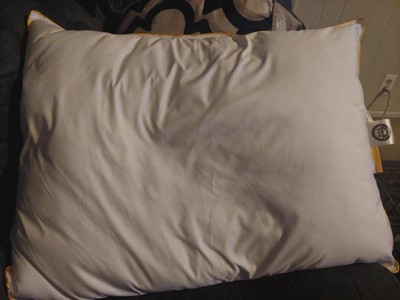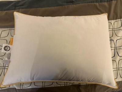 [This review was collected as part of a promotion.] This pillow has just the right balance of firmness/softness for me. It’s very comfortable to lay on. I sleep great on it. The signature yellow piping is adorable. I highly recommend this pillow.