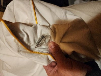 Hard plastic piece found inside pillow