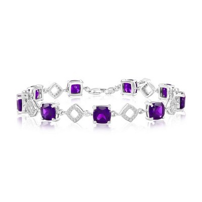 Simona Sterling Silver 4.5mm Round 3.42cttw Gem, Paperclip Bracelet -  Amethyst - Purple - 7.5 Inch - 2 of 3Simona Sterling Silver 4.5mm Round 3.42cttw Gem, Paperclip Bracelet -  Amethyst - Purple - 7.5 Inch - 3 of 3