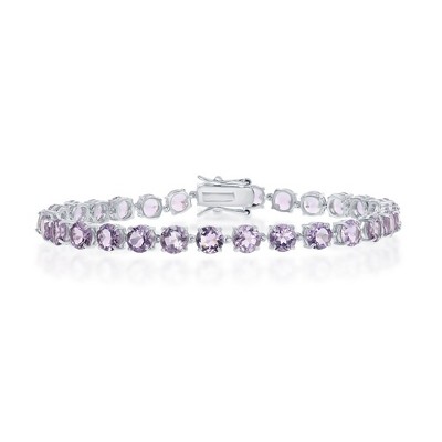Simona Sterling Silver 4.5mm Round 3.42cttw Gem, Paperclip Bracelet - Amethyst - Purple - 7.5 Inch