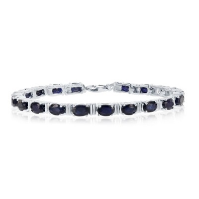 Simona Sterling Silver, 6x4mm Oval, 13.33cttw Blue Topaz Gem Tennis Bracelet - Blue - 7.5 Inch