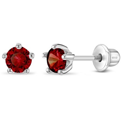 • Stone Type: Lab-Created, Stone Qty: 2, Stone Shape: Round, Stone Cut: Brilliant, Stone Weight: 1, Stone Size: 6mm, Stone Setting: Prong, Stone Color: Ruby