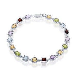 Simona Sterling Silver Oval & Square Gem Bracelet - Multi-Gem - Multi - 7 Inch - 1 of 2