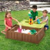 - Dual purpose children's bench opens for sand and water play or storage.