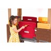 - FEATURES: Two-level playhouse has climbing ramp and ladders with toddler friendly foot and hand holds, pretend kitchen for cooking play, drink holders, art board with paper clips and marker tray, two working doors with mail slots, lower level crawling space and rooftop peek portals.