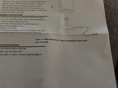 Maximum Light Bulb Wattage: 40 Watts