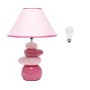 This 17.55" table lamp features a stacked ceramic base in shades of light and dark pink and a matching fabric shade. A charming, inexpensive, and practical table lamp to meet your basic fashion lighting needs. Perfect for living room, bedroom, office, kids room, or college dorm.