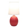 Simple Designs Chic Glow Mini Textured Oval Table Lamp Red White Shade