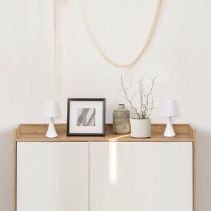 Add a contemporary feel to any room with these attractive white touch 11.42" lamps. Touch controls with 4 settings (Low, Medium, High, Off). The fabric shades complete this modern look. Perfect lamp for bedroom night tables. We believe that lighting is like jewelry for your home. Our products will help to enhance your room with chic sophistication.