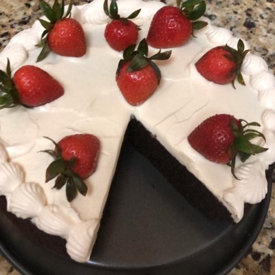 Love that its lower in calories and just enough for 8” pan. I love dark chocolate and this tastes like its on the dark side cuz of the low amount of sugar which I appreciate being pre-diabetic n all. My husband is also trying to lower his cholesterol so its a win for us. I did however sprinkle powdered sugar on it. My husband put chocolate icing on his slice. Very moist. Very good. I used canola oil and fresh farm eggs also greased the pan with butter cuz i think it gives cakes tht extra love it needs.