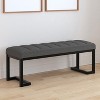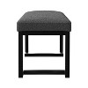 Textured upholstery plays perfectly with the modern silhouette of a backless accent bench. Its deep black finished frame is constructed in metal for excellent durability, with a bracket-inspired silhouette that emphasizes its contemporary design credentials. The seat has channel tufting that adds depth to plush foam cushioning. Upholstery is softly textured, perfect for a cozy feel in a modern living area or bedroom. Its neutral coloration is perfect for a variety of surrounding decor motifs.