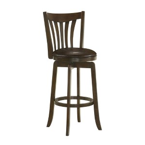 Simple Relax Pub Height Bar Stool with Slatted Back in Dark Cherry and Dark Brown - 1 of 4