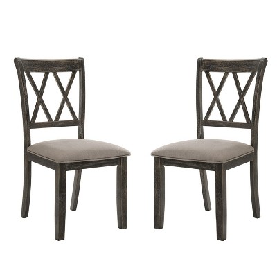 Enhance your dining area with the Simple Relax set of two fabric upholstered dining side chairs in a sophisticated dove grey and black two-tone finish. Crafted from sturdy wood and upholstered in cozy 100% polyester fabric, these chairs provide a soft yet durable seating experience. The modern farmhouse design pairs rustic warmth with contemporary style, making them a versatile addition to any home. With their comfortable cushions, solid build, and stylish color contrast, these side chairs bring both elegance and functionality to your dining space. Sold in a convenient set of two, they are perfect for everyday meals or entertaining guests.