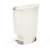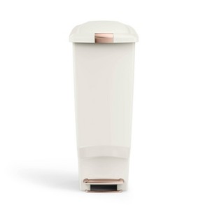 We currently have a simple human stainless steel trashcan that we love. When I saw this one, I like the color so much better than stainless and was excited about the price point. A few things about the can itself it’s very lightweight so when you put pressure on the step to lift the lid the entire trashcan tips forward. There isn’t a Insert that holds the trash like our other simple human. And in general, it’s just poor quality that being said if I was looking for a trashcan and wasn’t accustomed to the quality of simple human, I would be fine with it overall, I would skip this.