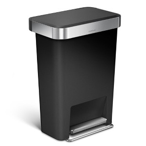simplehuman 45 Liter / 12 Gallon Rectangular Kitchen Step Trash Can with Soft-Close Lid, Black Plastic